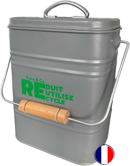 Pure&Co- Composteur Cuisine 3L-Design-Poubelle Compost Table Déchet Alimentaire-Anti Odeur Couvercle hermétique-Bioseau -Appartement Petit Plan Travail -Jardin -Recyclage -Mode d’Emploi Offert- Acier