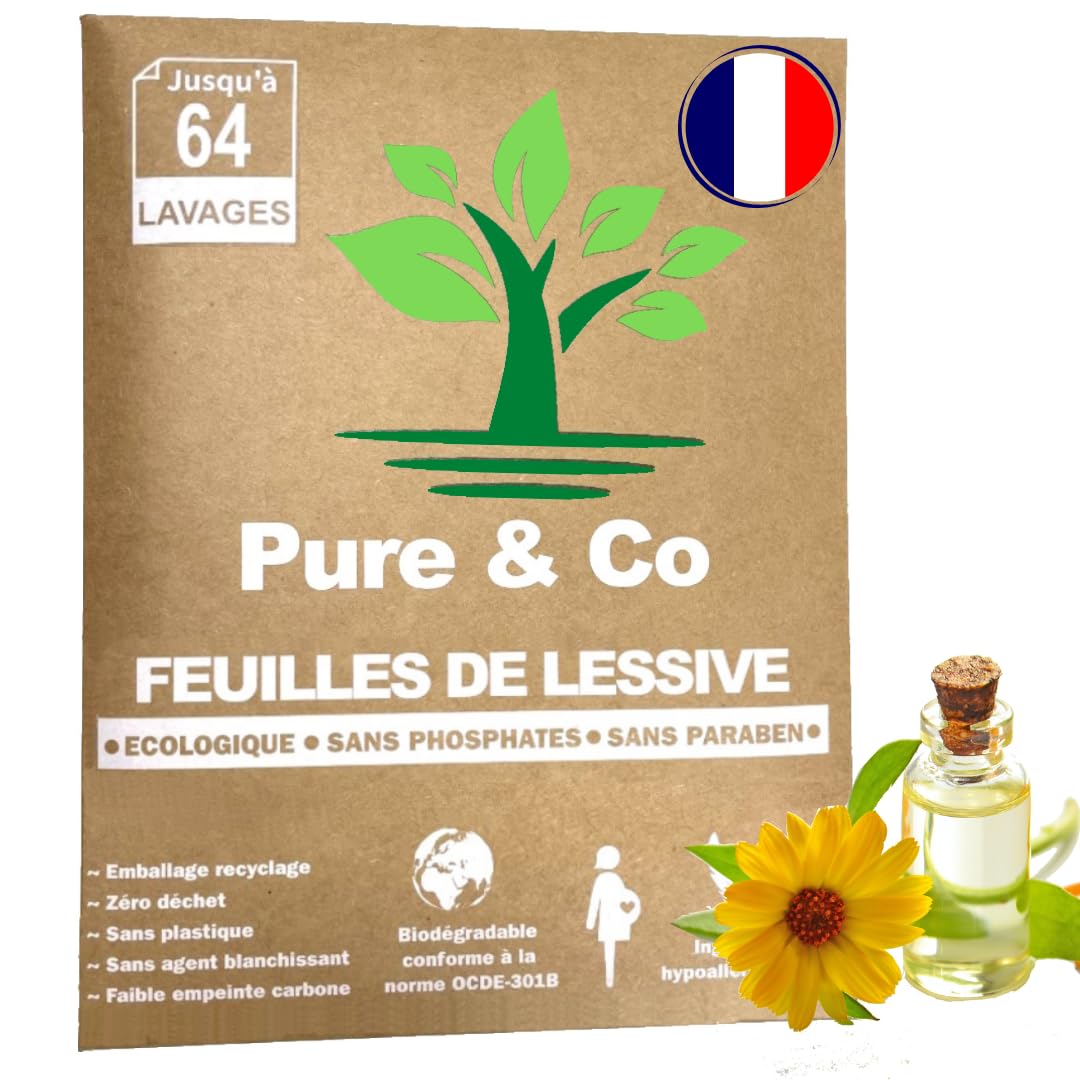 PURE & CO Lessive Feuilles Verte Ecologique, Bio, Bebe, Voyage, Machine à Laver, Main, Magique, Poudre, Hypoallergénique, Lingette, Concentrée, Parfum naturel Huiles Essentielles